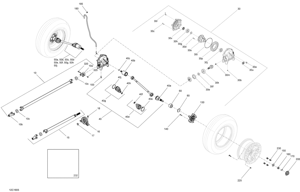 JOINT GAUCHE *HALF SHAFT LH. Package CAB Includes 50 to 50j